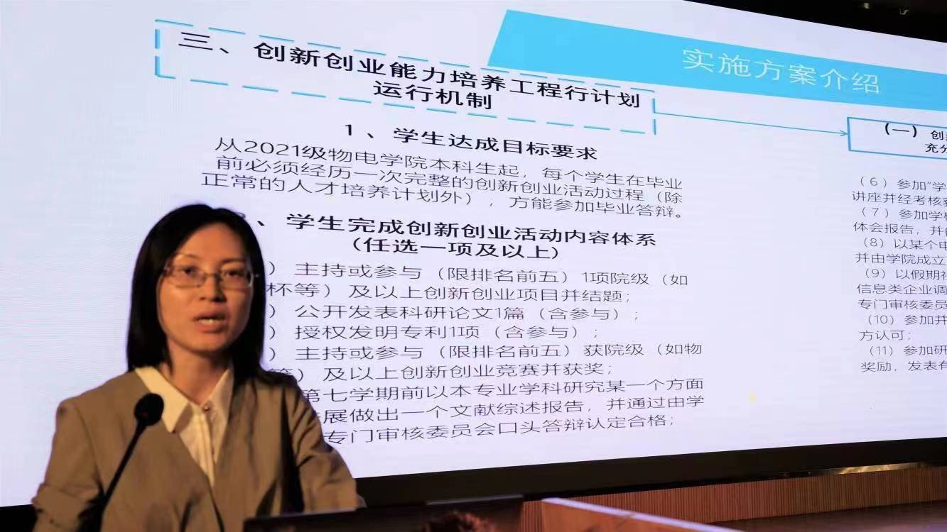 会议伊始,党委副书记宋国宁为同学们详细解读了物电学院本科生创新创业能力培养工程行动计划实施方案,让同学们对创新创业方案的建设思路,组织机构及运行以及创新创业能力培养工程计划运行机制有了更深入的了解。