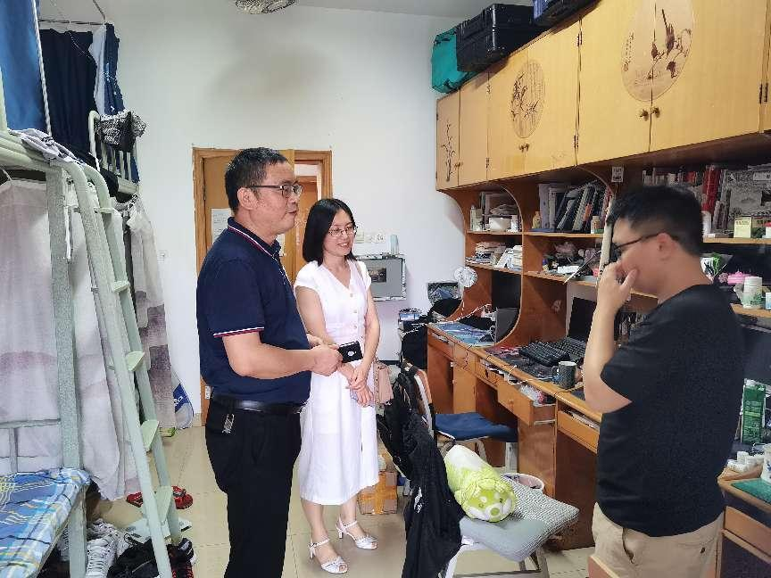 两位书记每到一间宿舍都会亲切询问毕业生们的工作情况,鼓励大家在工作中勤奋务实,积极进取,并叮嘱同学们离校期间注意安全,互帮互助。