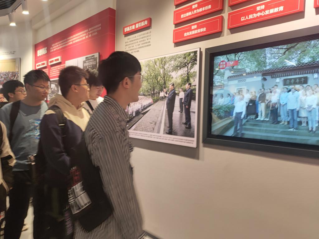 现场,全体同学在讲解员的带领下,全面回顾了学校发展的历史进程,现场感受党的十八大以来学校取得的历史性成就。“国之大者”、“材之茂者”、“师之贤者”、“行之实者”四个篇章、2000余副(件)照片、实物、模型等深深震撼了新生的心灵,让在场新生深刻感受到学校与时代同发展、与人民齐奋进、始终牢记“为党育人、为国育才”初心使命所取得的丰硕育人成果,更让新生为学校的发展、担当感到深深的自豪。