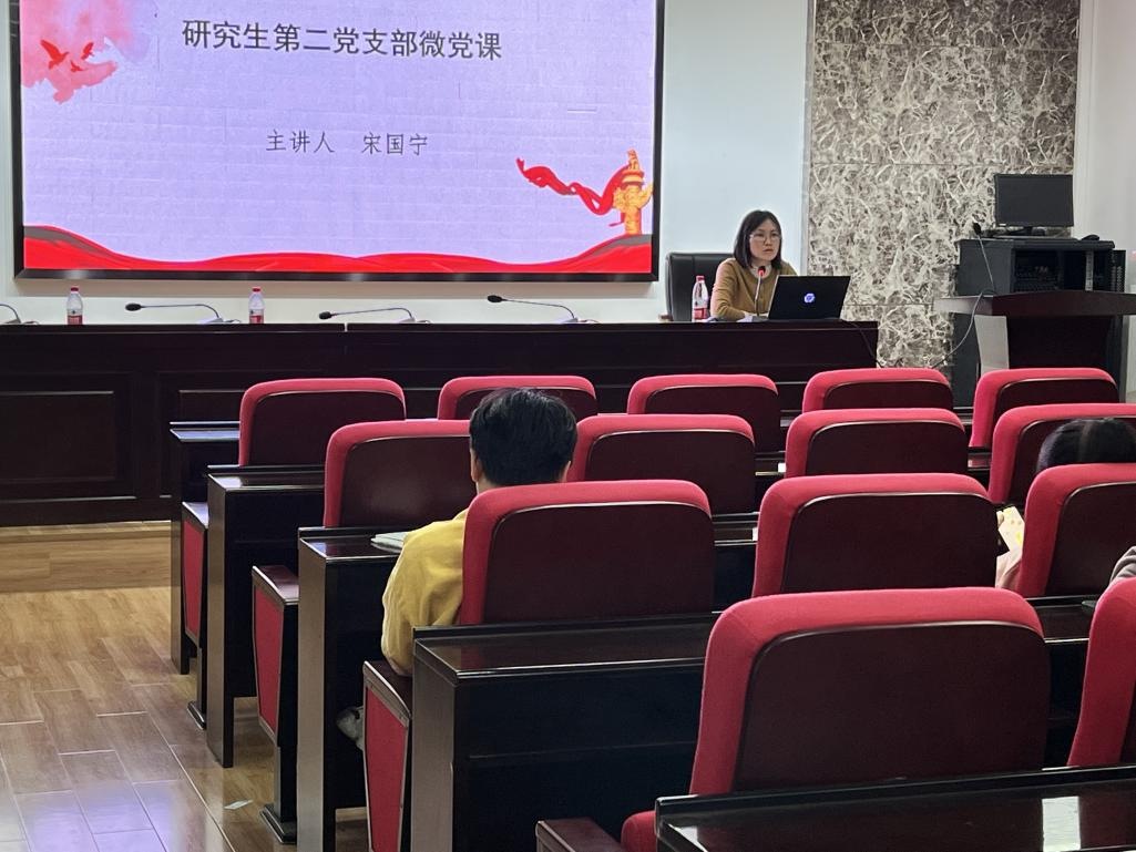 会议开始,首先由学院党委副书记宋国宁上微党课,本次微党课内容主要围绕全面贯彻落实党的二十大精神,认真学习和深刻领会习近平总书记的报告展开,宋书记勉励大家:年轻党员应当“肩负光荣使命 勇担历史重任”,从自身做起,勤奋学习,将来为国家做出自身贡献。