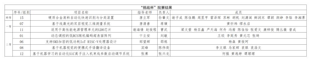 经项目申请、评委答辩、学院研究讨论,现将物电学院2023年“挑战杯”大学生课外学术科技作品竞赛入围校赛项目公示如下: