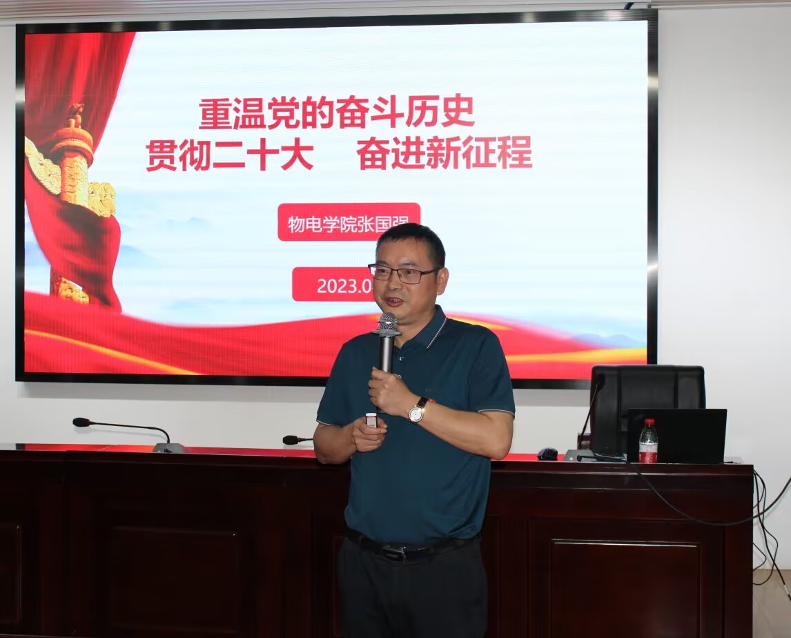 2023年5月9日下午,物电学院联合外国语学院、马克思学院开展的入党积极分子的第三次培训于理科楼B413顺利结束。本次党课培训的主讲人是物电学院党委书记张国强。物电学院、外国语学院、马克思主义学院三个学院的九十余位入党积极分子参与了本次培训。