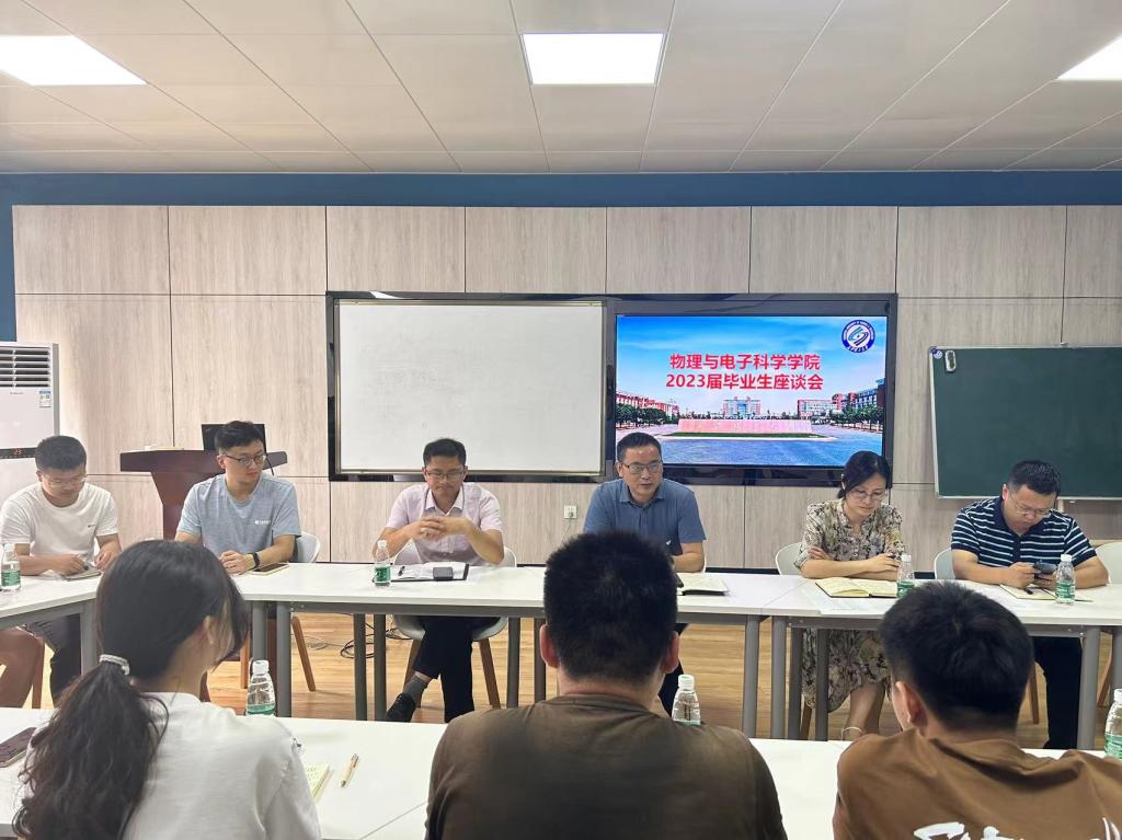6月16日上午10:00,物电学院2023届毕业生代表座谈会在理科楼C509举行,院党委书记张国强、副院长(主持工作)张卫兵、党委副书记宋国宁、副院长范志强以及来自不同专业班级的13名本科生、研究生毕业生代表参加座谈会,会议由宋书记主持。