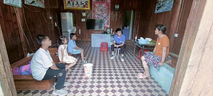 农具维修队走进小婷的家。经了解,该生家庭条件比较困难,爷爷重病在身,父母长期在外务工,但是被拖欠工资。了解到此同学家庭情况后,支教队员深受感触,并鼓励小婷努力学习,考上理想大学,走出大山。