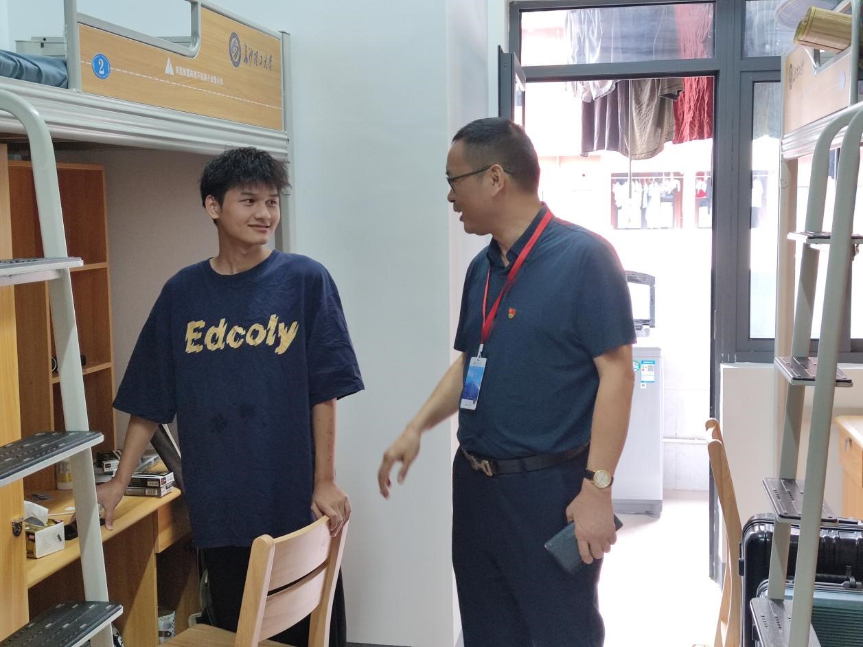 2023年9月30日上午,物电学院党委书记张国强,副院长(主持工作)张卫兵,党委副书记宋国宁,新生班主任及学工办全体老师来到学生宿舍,亲切慰问2023级新生,了解新生入校生活情况。