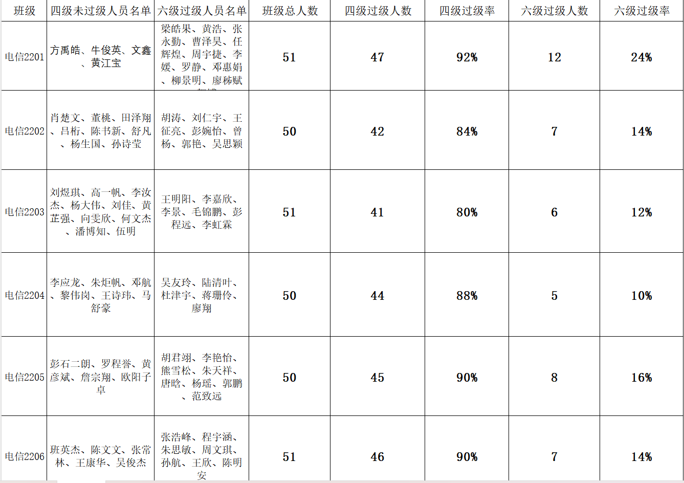 22级全体学生共528人,四级过级率达到了88.31%,其中大部分班级达到了90%以上,六级过级率达到了15。88%;21级全体学生共414人,四级过级率达到了91.92%,其中有部分班级达到了95%以上,六级过级率达到了27.17%;20级全体学生共405人,四级过级率平均达到96.16%,部分班级的四级过级率已达到100%;六级过级率平均达到39.75%,部分班级的六级过级率已达到50%以上。但各年级中仍存在部分学生未过四级。