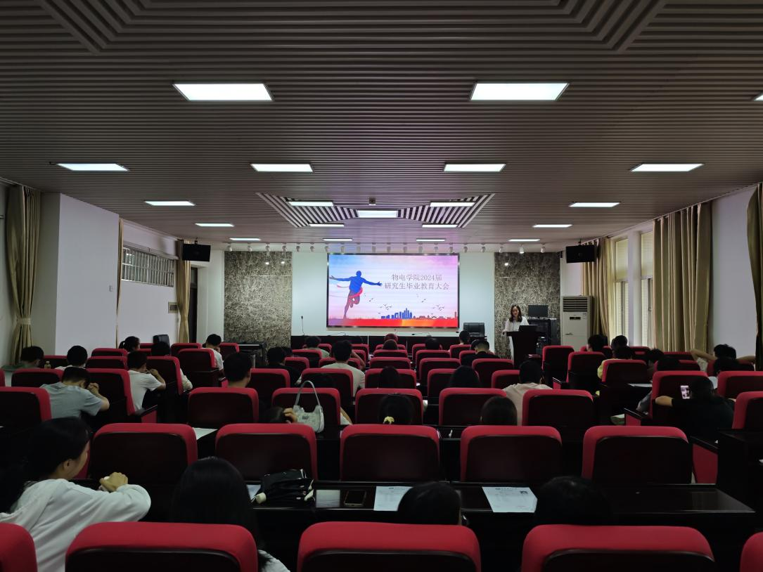为扎实推进学院2024届研究生毕业生工作,引导毕业生深怀感恩之情,力践强国之行,5月31日下午4:30,物电学院研究生毕业教育大会在理科楼B413举行。大会由研究生辅导员蒋琳嫒老师主持,党委副书记宋国宁、辅导员赵俊程、郭晨鑫及2024届全体研究生毕业生参加了此次会议。