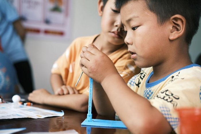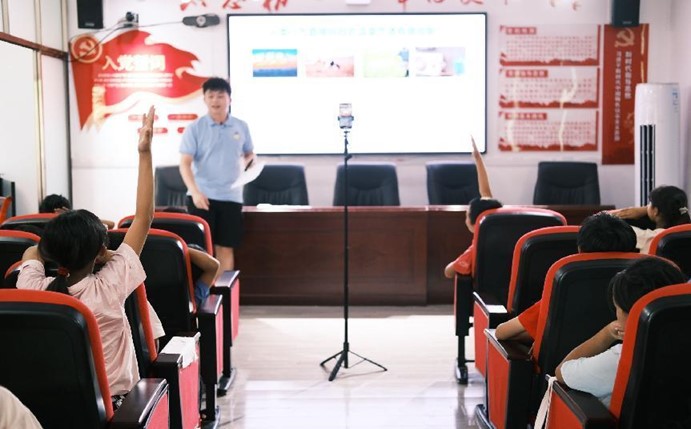 在讲解基础知识后,老师带领孩子们动手制作简易水位监测器,了解水位监测的基本原理和方法,从组装电子元件到连接导线,再到仪器安装完毕,最后将漂球放入烧杯中,随着水位的上涨,“嘀嘀嘀”的报警声吸引了在场所有学生的目光,大家纷纷加快手中的实验进度。实验过后,孩子们回到课堂,老师针对夏季多发雷雨天气以及防汛避险小常识、乡村内涝、溺水等危机时如何逃生自救等方面知识,深入浅出、生动有趣的现场讲解科普。