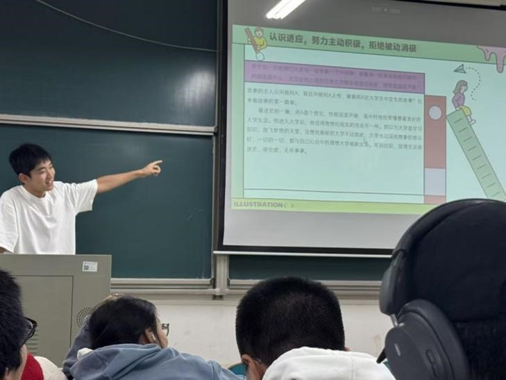 班会上,各班心理委员充分发挥朋辈优势,积极引导同学们发现高中生活与大学生活的差异,鼓励同学们说出适应过程中遇见的困扰并拟出解决方案。接着,心理委员讲述了一位同学的“新生适应不良综合症”,结合特征分析和知识链接,阐释了适应大学新生活的重要性,呼吁同学们应积极关注心理健康。