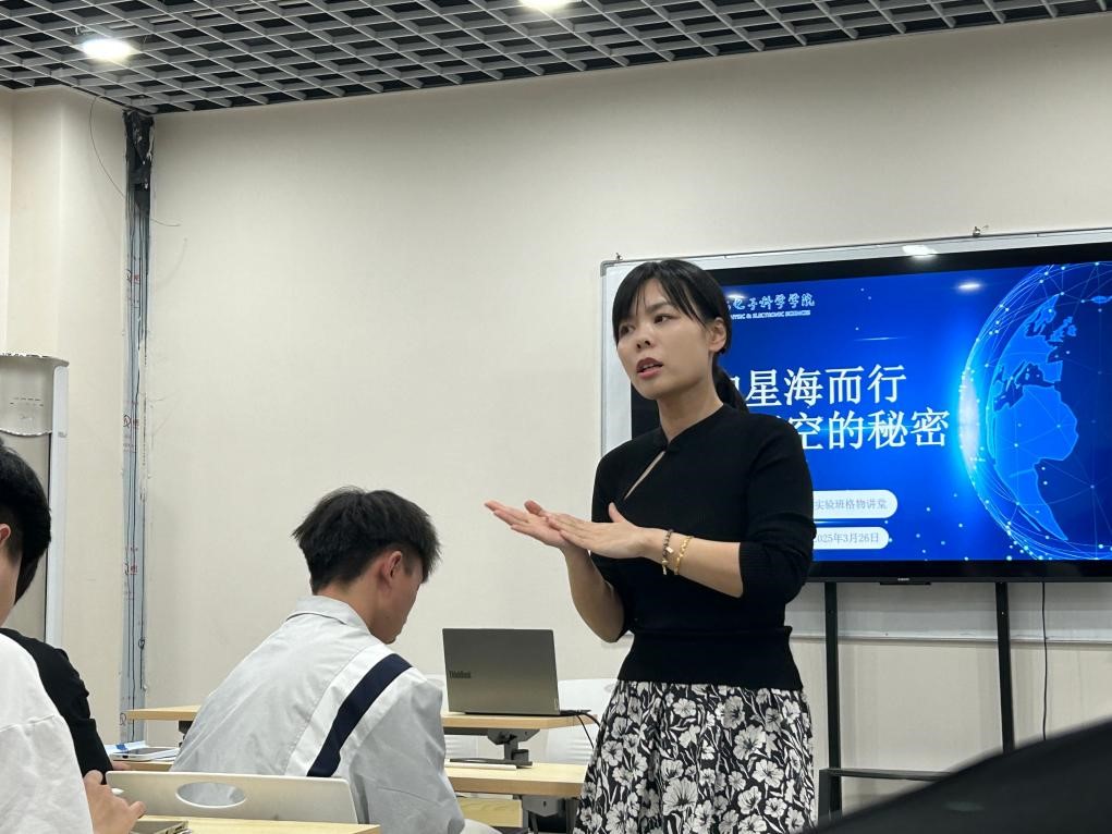 讲座中,她从同学们熟知的太阳风、地磁暴、极光等空间现象切入,用生动的比喻和前沿科学案例,系统阐释了空间天气的形成机制。通过分析磁暴对电网、卫星导航系统的实际影响,深刻揭示了深空探测对保障人类社会正常运行的重要意义。她特别强调,地球磁场作为生命的 “保护伞”,其研究需要多学科交叉融合,鼓励青年学子以“格物致知”精神投身基础研究。
