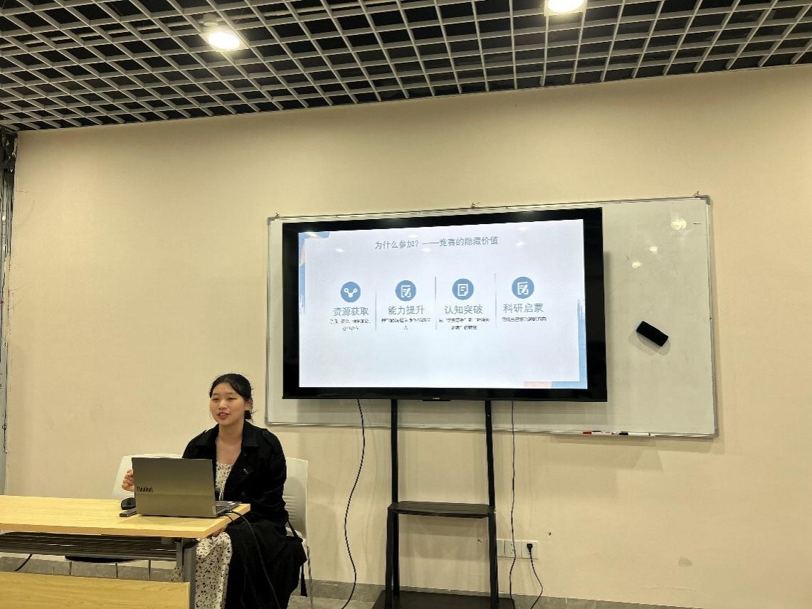 在学术经验分享环节,学院特别邀请优秀研究生代表梁文萱同学作学科竞赛专题报告。作为全国大学生电子设计竞赛一等奖获得者,梁文萱结合自身参赛经历,从选题策略、团队组建、备赛周期管理等方面进行了系统讲解。她重点分享了 “需求导向型” 选题方法,并结合典型案例分析了竞赛实践中的注意事项。“学科竞赛是理论知识与实践能力的试金石”,梁文萱鼓励学弟学妹们以赛促学,在解决实际问题的过程中培养创新思维和团队协作能力。