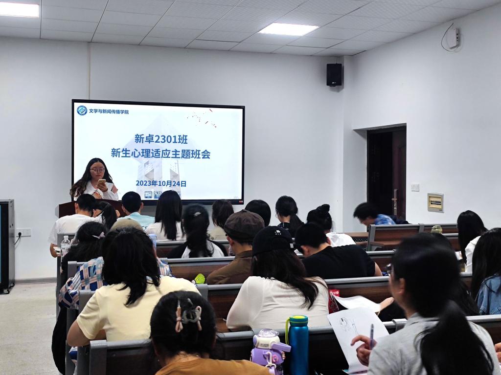 为帮助新生提高心理适应能力,以更加积极的心态面对大学学习生活,10月下旬,文新学院2023级新生各班陆续开展了以新生心理适应为主题的班会,班主任老师、下班党员干部到场指导。