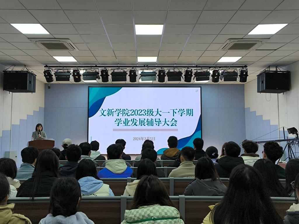 为帮助学生更好的明确大学学业目标及发展规划,3月5日下午,文新学院在九号教学楼113举行2023级本科生学业发展辅导大会。会议由年级辅导员李婵主讲,23级全体学生参加。