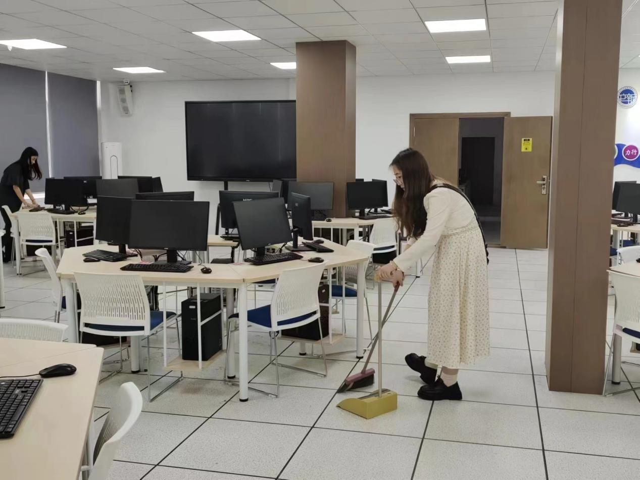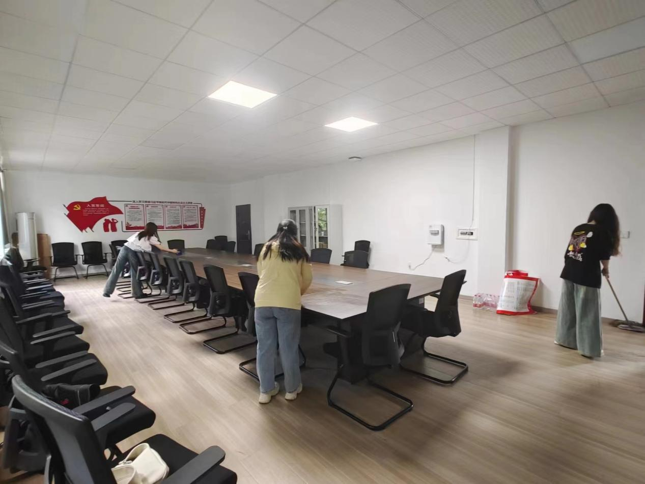 活动现场,在负责人的统一安排下,志愿者们迅速分工,有序地投入到清洁工作中。志愿者们手拿各种工具清扫着桌椅、窗户及地板,不放过任何一个角落,确保每一个细节都干净明亮。志愿者们通过自己的实际行动,表达自身的感恩之情,为校园环境的改善做出了积极贡献。