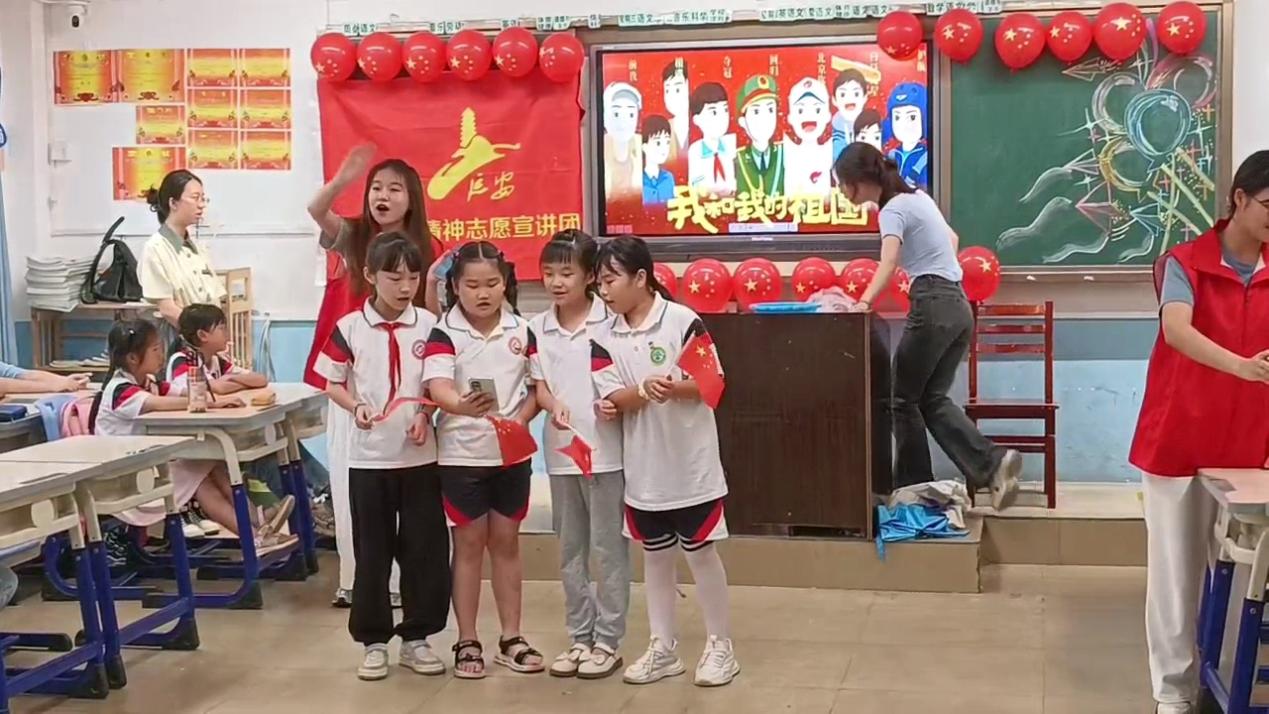 “我和我的祖国,一刻也不能分割……”悠扬的旋律伴着稚气而嘹亮的歌声,回荡在子弟小学五年级一班。活动伊始,全体同学在宣讲团团长季晴的带领下,合唱《我和我的祖国》,现场气氛逐渐高涨。