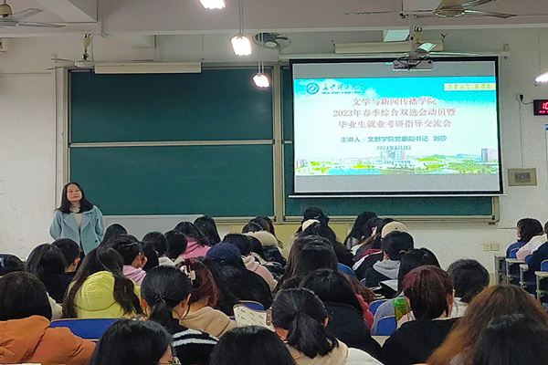 为落实教育部办公厅《关于开展2023届高校毕业生春季促就业攻坚行动的通知》,抢抓春季开学后促就业工作关键期,帮助学生做好个人规划、理清未来发展方向,2023年3月3日上午10点,文新学院召开2023年春季综合双选会动员暨毕业生就业考研指导交流会,学院党委副书记刘莎、年级辅导员李婵与23届全体毕业生参加。