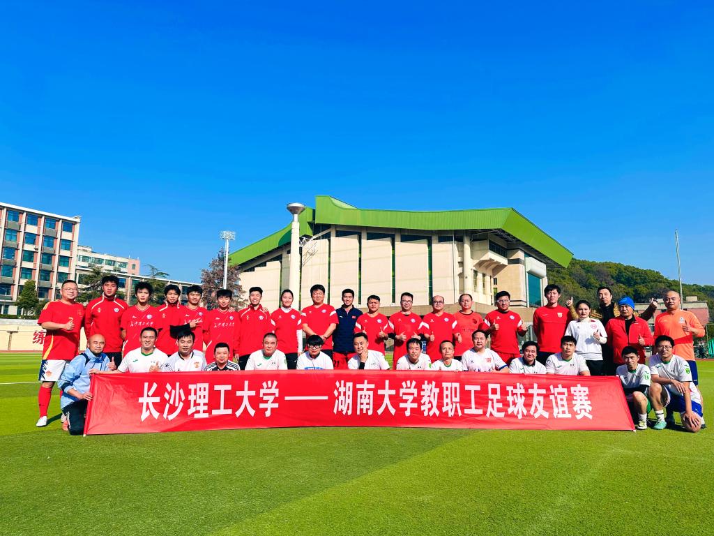1月11日下午,2025年新澳门原料网站教职工足球队与湖南大学教职工足球队在湖南大学南校区足球场展开了一场精彩纷呈的友谊赛。两校教职工以球会友,在绿茵场上展现了精湛的球技与昂扬的精神风貌,现场百余位家属和观众共同见证了这场充满激情与友谊的体育交流活动。