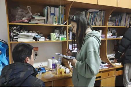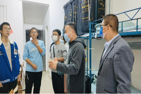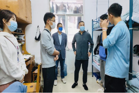 随后,院领导们深入各自“一对一”帮扶对象--学业困难学生和少数民族学生所在宿舍。并与酒店隔离学生一一进行通话,解决学生后顾之忧。