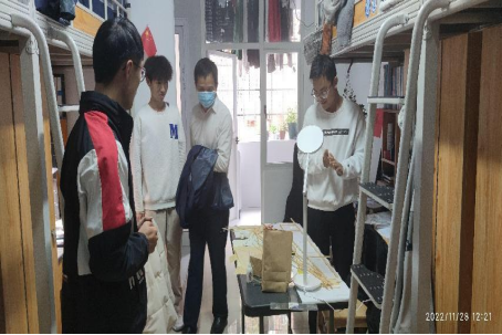 走访过程中,老师与同学们亲切交流,了解学生急难愁盼问题,叮嘱同学要做好个人防护,佩戴好口罩,养成良好的生活作息习惯;严格遵守疫情防控规定,积极配合做好核酸检测、易班健康打卡等工作;合理安排好学习,保持乐观心态。每到一个寝室,江河书记便与同学们强调,身体才是抗疫的本钱,鼓励同学们在做好疫情防控的前提下进行体育锻炼,增强身体素质,以阳光积极的心态、健康的体魄抗击疫情。