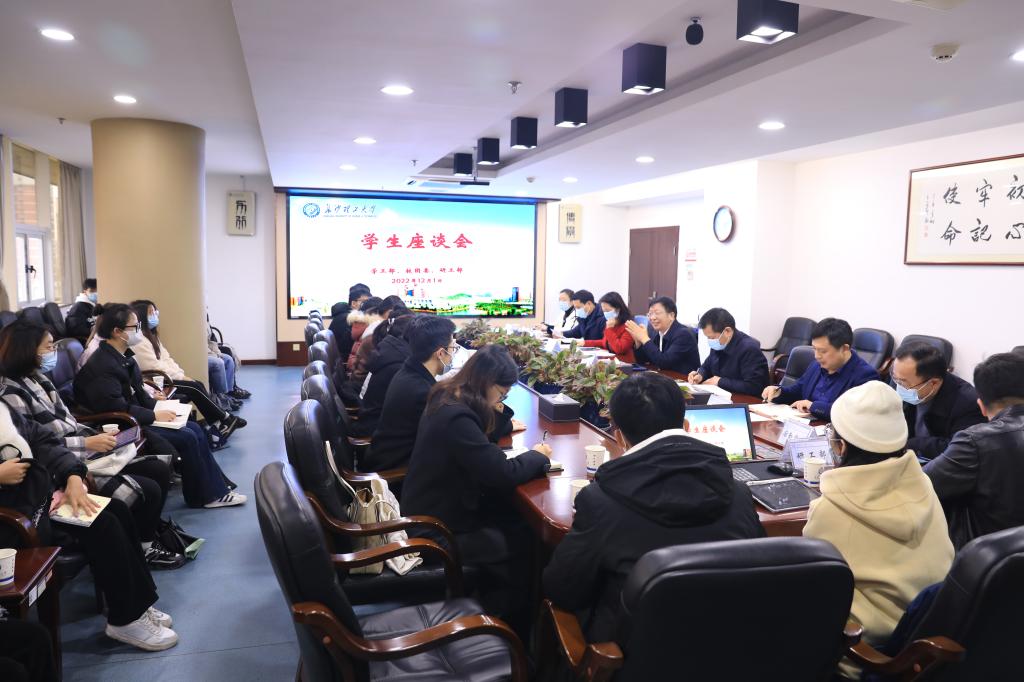 11月30日、12月1日,学校先后在金盆岭校区、云塘校区召开“师生面对面”座谈会,学校党委书记付宏渊,党委委员、副校长谈传生,党委委员、副校长钱国平,党委委员、宣传部部长方琼出席,有关职能部门负责人及来自各学院共计66名学生代表参加。