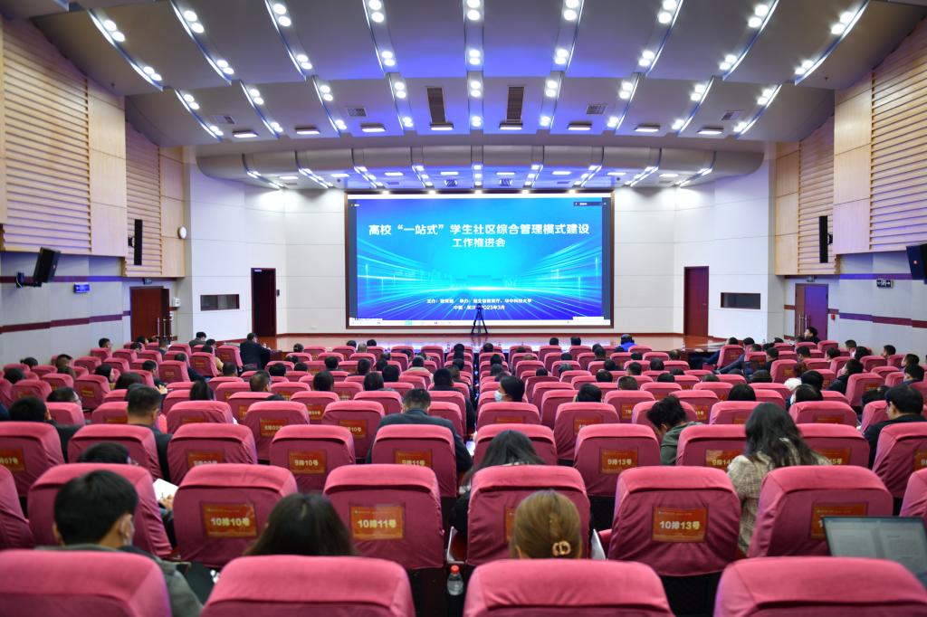 为深化高校“一站式”学生社区综合管理模式建设,交流建设经验,部署工作任务。3月21日下午,教育部思政司召开“一站式”学生社区综合管理模式建设工作推进会,主会场设在华中科技大学,教育部副部长翁铁慧、湖北省副省长张文彤等领导出席并讲话。湖南省分会场设在我校图书馆报告厅,全省高校相关负责同志及学工部长到场参加线上会议。
