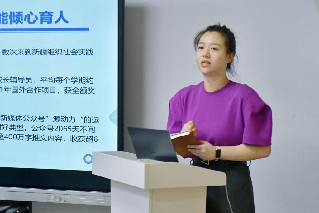 罗亦欧结合湖南省辅导员素质能力大赛赛况,围绕“真热爱,心中有爱方能倾心育人”“真本领,行有方才能行稳致远”“真收获,在学思行中提升能力”三个方面对自身工作经历及备赛心得体会做主题分享,她鼓励新进辅导员们立足平时、立足日常,回归工作本身寻求自身发展的突破口,努力“解锁”一位思政工作者全流程、多方位、各环节的工作技能。