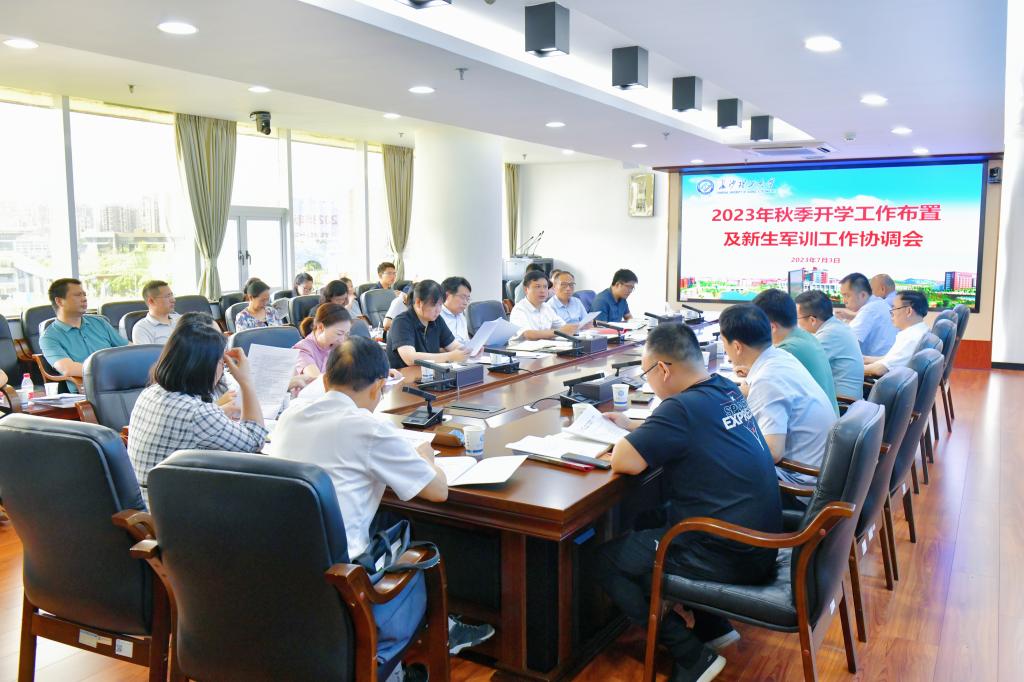 第二阶段,部署协调2023年秋季开学工作及新生军训工作。会议强调要坚持围绕学生、关照学生、服务学生的原则,认真组织迎新及军训工作,做好精准细致的服务,营造宁静、有序,热情、细致,安全、祥和的工作氛围,保障新学期开学、军训工作顺利开展。