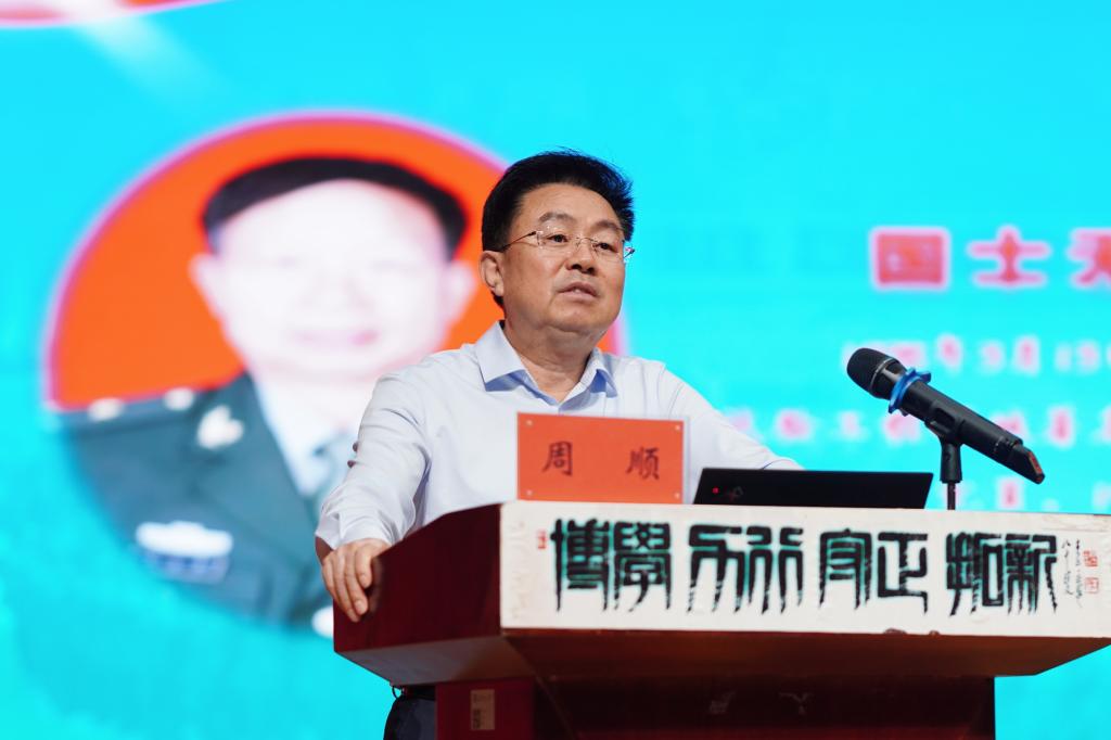 在熟悉的《马兰谣》中,周顺带领师生走进马兰花盛开的国家核试验场地——新疆马兰,从“马兰花”“马兰人”“马兰魂”三个单元,图文并茂地对“干惊天动地事 做隐姓埋名人”的马兰精神做了深刻、细致的解读。他深情追忆了自愿隐姓埋名数十载、为国家事业无私奉献的英雄们,列举了张蕴钰、程开甲、林俊德等“马兰人”的动人故事,深刻阐释了马兰人报效祖国的担当气魄,以身许国的价值追求。周顺指出,马兰精神是老一辈创业者矢志报国、自强不息的智慧结晶,是追梦强国、铸盾砺剑的力量凝聚。他勉励青年学生要爱国、奉献、团结、奋斗,用青春之力报效伟大祖国,实现强国梦想。