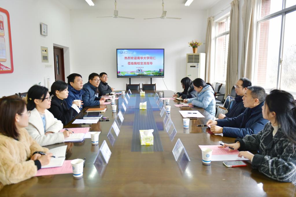 3月1日下午,南华大学党委宣传部常务副部长代艳丽、学工部部长李照一行6人来我校调研学生工作,双方在学生活动中心401会议室进行交流座谈,会议由学工部副部长陶传谱主持,学工部副部长吴振华、宣传部副部长叶正芳和各科室负责人参加座谈。