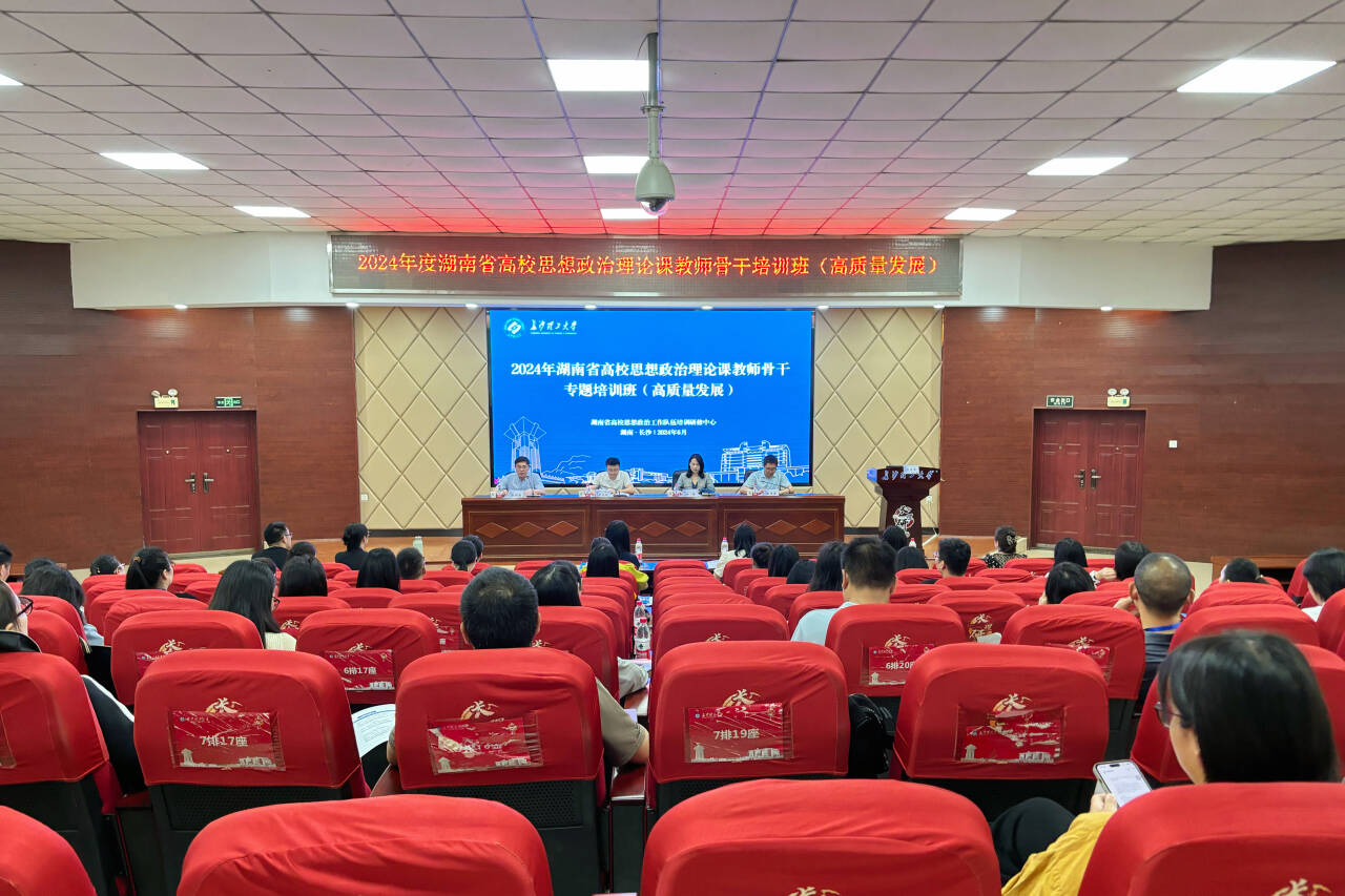 6月12日上午,2024年湖南省高校思想政治理论课教师骨干专题培训班(高质量发展)开班仪式在我校云塘校区文科楼A200举行。湖南省委教育工委宣传部部长、省教育厅思政处处长甘文波出席,我校党委委员、宣传部部长方琼,马克思主义学院院长张明海,学工部副部长陶传谱,以及来自全省高校的110余名学员参加。