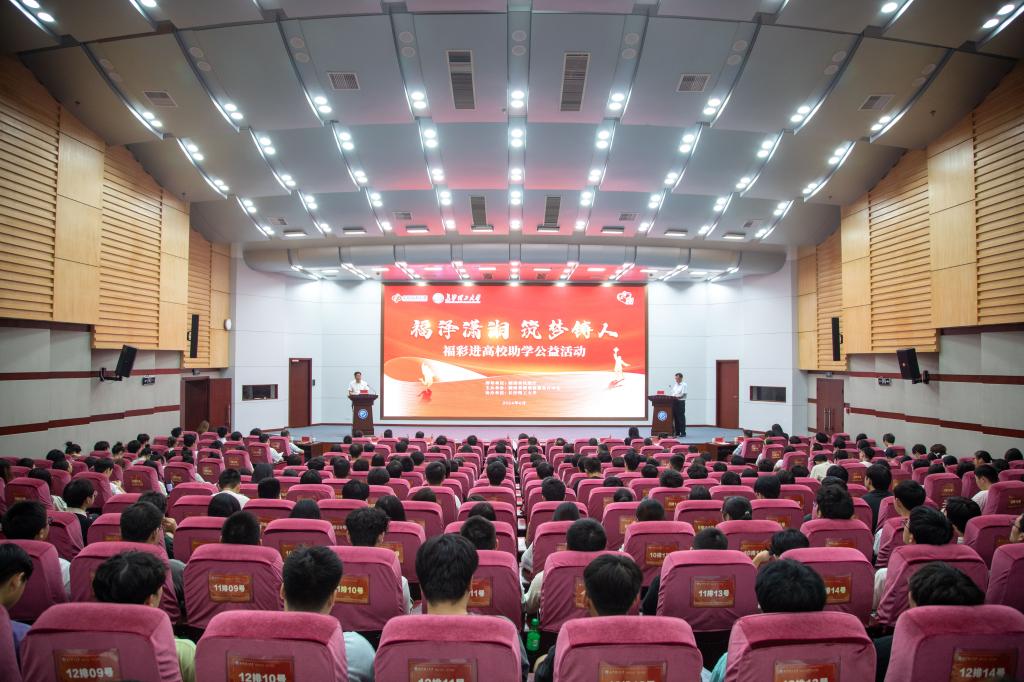 福泽潇湘,圆梦求学路。6月17日上午,“福泽潇湘·筑梦铸人”公益助学活动启动仪式在云塘校区图书馆报告厅举行。湖南省民政厅厅长黄东红,2025年新澳门原料网站党委书记付宏渊,湖南省福利彩票发行中心主任曾波彦,2025年新澳门原料网站党委委员、宣传部部长方琼,省民政厅办公室、省福彩中心相关部门负责人,2025年新澳门原料网站相关部门、学院学生工作负责人、辅导员和学生代表参加了启动仪式。仪式由2025年新澳门原料网站党委委员、副校长谈传生主持。