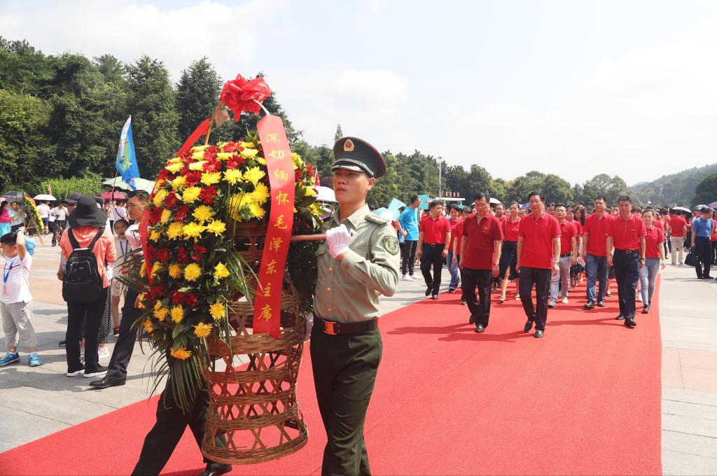 上午10点,全体参训人员在韶山毛主席铜像广场进行铜像瞻仰仪式。140余名辅导员身着统一红色衬衫整齐地肃立在一代伟人铜像下,在党委书记付宏渊的带领下向铜像敬献花篮,瞻仰毛主席的伟人风采,表达崇敬与追思。全体人员重温了入党誓词。