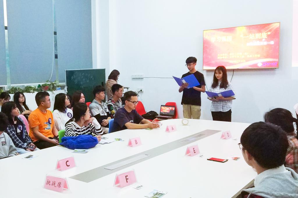 为深入学习贯彻习近平新时代中国特色社会主义思想和党的十九大精神,庆祝中华人民共和国成立70周年和五四运动100周年,进一步提高广大学生政治理论素养、增强爱国意识,由学生工作部(处)主办、大学生“学习社”和学校易班中心承办的“学习强国”一站到底理论知识挑战赛第一期活动于5月10日晚上19点在二办公楼B101会议室举行。
