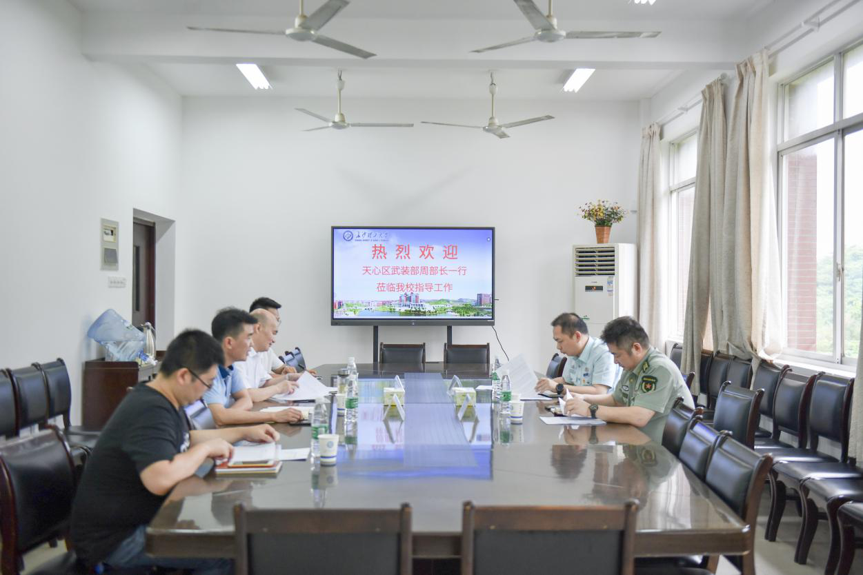 6月9日下午,天心区武装部周永顺部长、征兵办毛湛参谋来校调研2020年征兵工作。学校武装部艾楚君部长、霍向阳副部长及部分学院负责征兵工作老师参加。