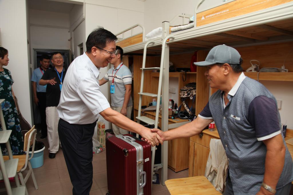 付宏渊书记一行先后来到了西苑11栋、西苑2栋学生公寓,了解迎新保障工作及新生报到入住情况。在宿舍里,校领导一行遇到了正在整理床铺的交通学院道桥1906班王夏同学一家。“空调开了吗”“还有什么需要帮助的地方”,付宏渊书记仔细查看了宿舍空调、照明等设施情况,关切询问了王夏同学入学后的感受,并与新生家长亲切交流。他勉励新生尽快融入大学生活,做好学业规划,努力学习知识本领。“孩子交给你们我放心”王夏同学的家长动情地说。