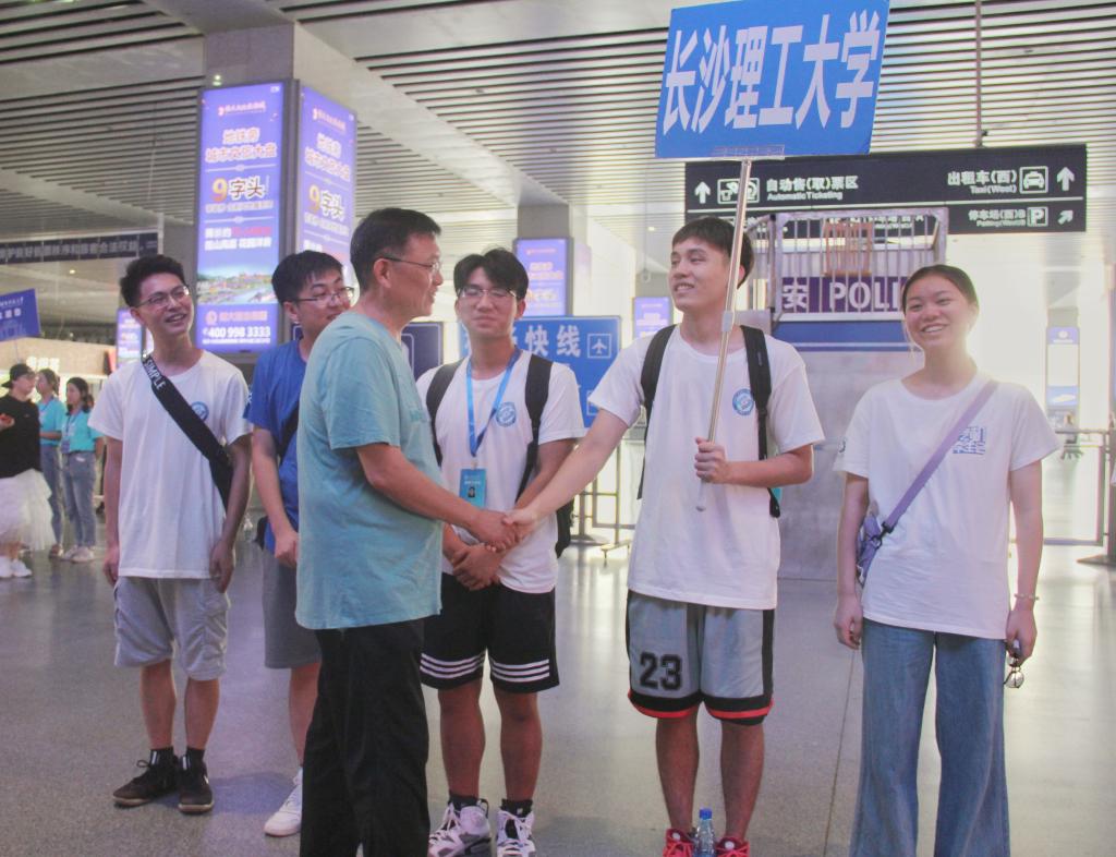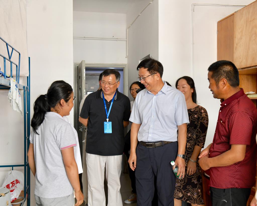 9月7日下午,校党委书记付宏渊、副校长谈传生在党政办、学工部、国资处、后勤处、保卫处、后勤集团负责人以及天心区金盆岭派出所所长李省城的陪同下,看望2019级新生及家长,慰问服务在一线的迎新工作人员、志愿者。