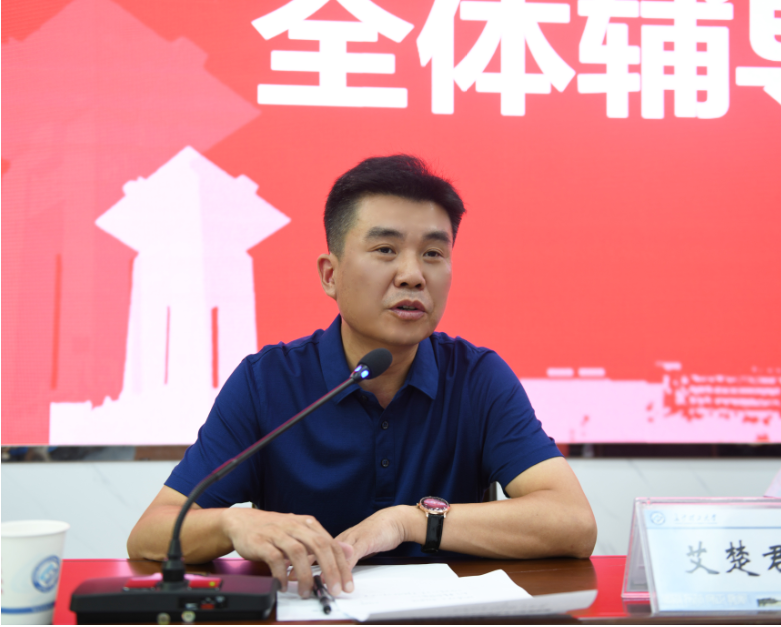 副校长谈传生致欢迎辞,他向各位学员表示祝贺,介绍了我校作为湖南省“三全育人”试点高校和湖南省高校思想政治工作队伍培训研修中心在辅导员队伍建设方面的情况。他表示,我校将按照《湖南省高校思想政治工作队伍研修中心建设标准》出台制度、加强建设、打造平台,认真组织好每一次培训。他希望各位学员带着高度的责任感和使命感,学有所思、学有所获、学有所用,为自身今后的职业化、专业化发展打下良好基础。