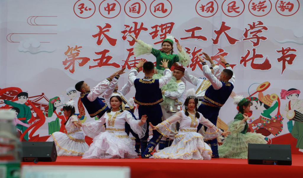 为展示多民族风采,弘扬中华优秀传统文化,增进各民族交流交融,使广大学生增强中华民族共同体意识,牢固学生的爱国情怀。我校于11月3日举办了第五届民族文化节。校长曹一家,副校长谈传生,新疆驻湘工作组党委副书记、省教育厅民教处副处长、教育协调工作小组组长艾美华,新疆驻湘工作组成员李艳萍、吕鹏鹏,相关部门和院系负责人参加活动。