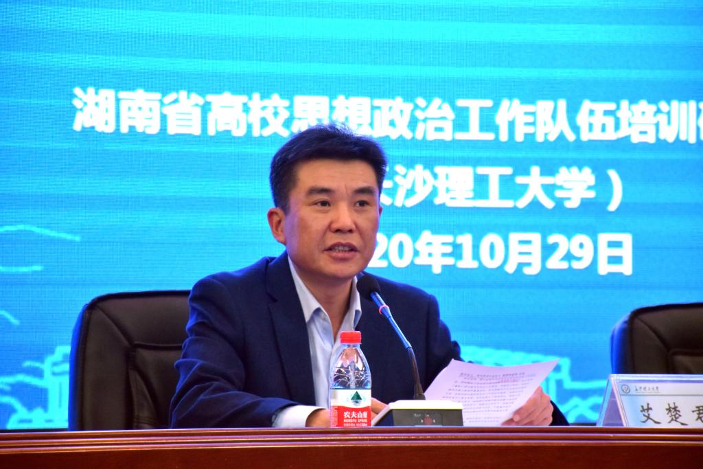 2020年10月29日,2020年湖南省高校辅导员校园文化建设专题培训班开班典礼在我校云塘校区文科楼A200举行。副校长谈传生、省委教育工委宣传部部长刘书华以及来自全省各高校的120名辅导员参加。我校学工部部长艾楚君主持开班仪式。