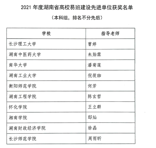 为推进落实《教育部等八部门关于加快构建高校思想政治工作体系的意见》文件精神,推动全省高校网络文化建设,进一步提升高校开展网络思政和易班建设的质量,增强高校运用易班开展网络思想政治教育和网络文化建设的能力,近日,湖南省高校易班发展中心对我省2021年度易班建设优秀单位、优秀工作案例进行了表彰。我校蝉联“2021年度湖南省高校易班建设工作先进单位”荣誉称号,推选的案例《基于校院两级的“红耀湖湘”主题党史学习系列活动》荣获“2021年度湖南省高校易班建设优秀案例”。