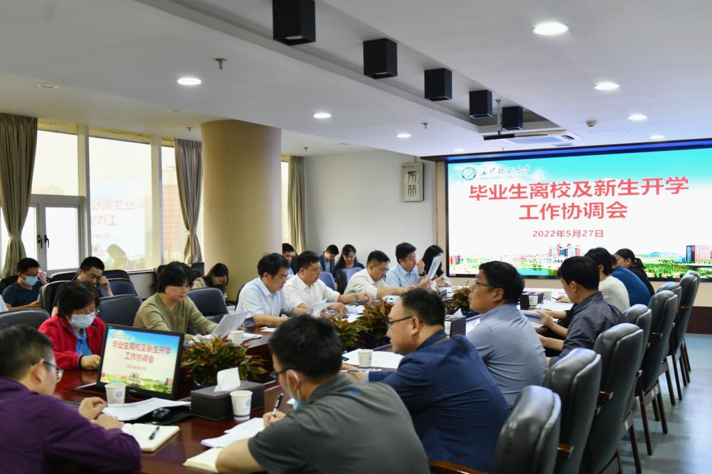 第二阶段,会议就毕业生离校及新生开学相关工作进行布置协调,强调要以“爱校感恩”为切入点,坚持围绕学生、关照学生、服务学生的原则,加强对毕业生理想信念、价值取向、使命担当等方面的教育,营造健康有序、生动活泼的氛围,保障毕业生安全、文明、和谐离校。