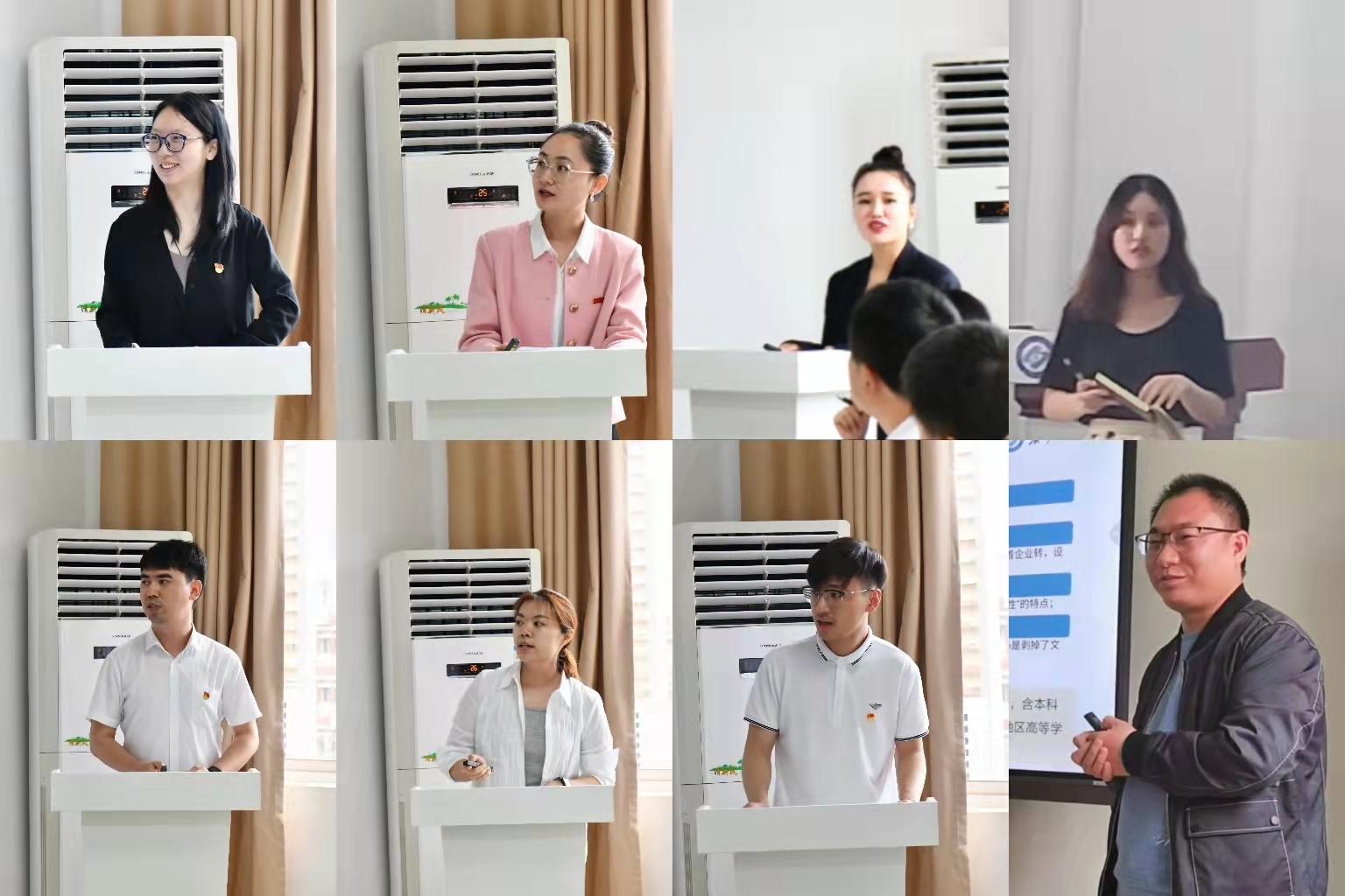 土木学院周媛、林安妮,电气学院王迪,汽机学院李凯辉,能动学院胡雅妮,经管学院杨舒文、吴畏,数统学院刘晓丹一一汇报了入职后的工作进展,分享了自己的成长转变和心得感悟,抒发了坚守立德树人初心,立志做好学生知心朋友和人生导师的情怀。会上,大家还围绕辅导员工作和个人成长进行了交流讨论。