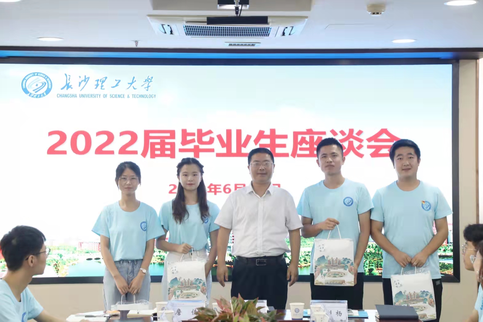 会上,校领导为参会毕业生代表赠送了长理特色文创纪念品。
