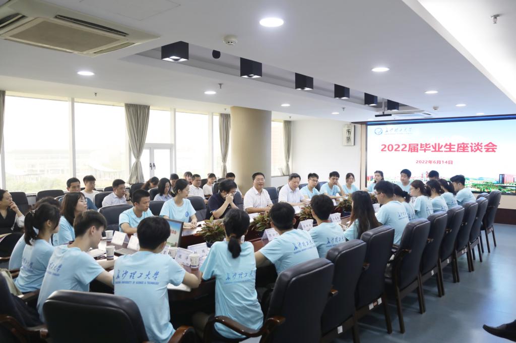 6月14日上午,2022届毕业生代表座谈会在云塘校区一办六会议室举行。校长曹一家,副校长曾祥君、钱国平出席,相关职能部门负责人以及23位毕业生代表参加座谈会。