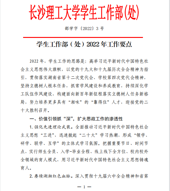 学生工作部(处)2022年工作要点