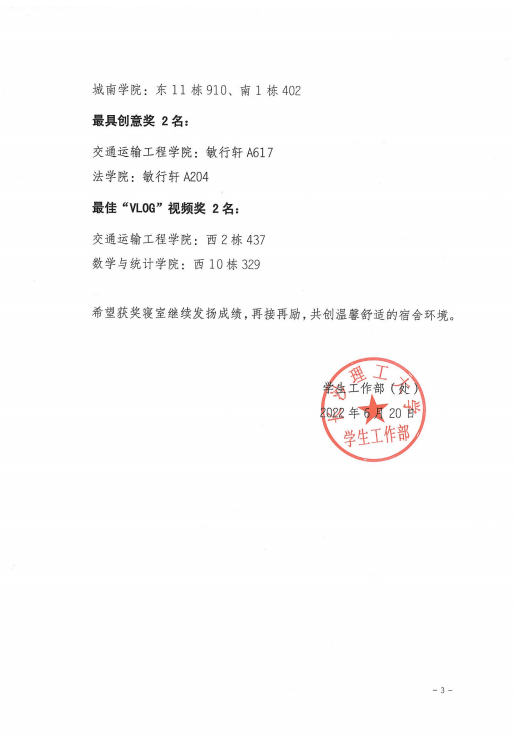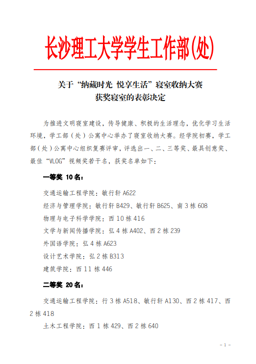 关于“纳藏时光 悦享生活”寝室收纳大赛获奖寝室的表彰决定