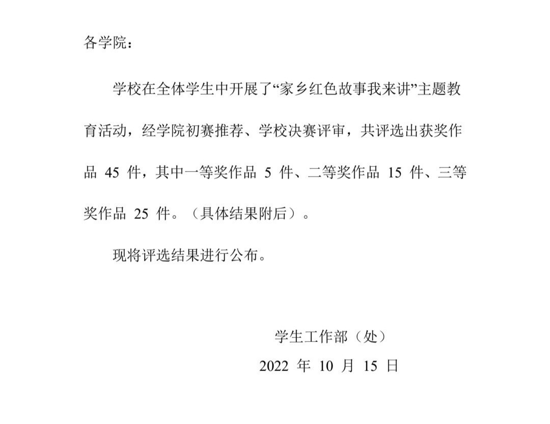 关于公布“家乡红色故事我来讲”主题教育活动作品评选结果的通知