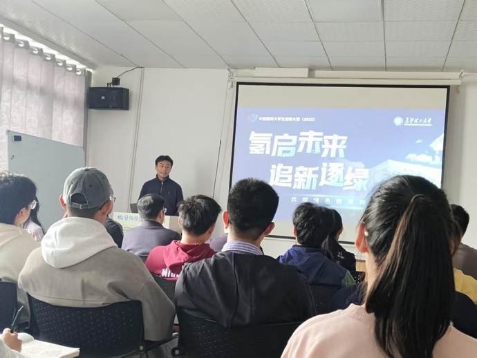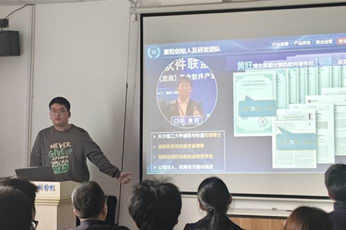 随后,会议进入经验分享与政策解读环节。往届获奖代表周乐洋同学结合自身参赛经历,为在场同学详细介绍了“挑战杯”“金种子杯”等重点赛事的最新政策动态、竞赛规则调整及评审侧重点。紧接着,另一位获奖代表熊冠智同学进行了现场展示与经验分享。他以模拟项目汇报的形式,生动直观地演示了如何在竞赛中高效、专业地完成成果展示与答辩,内容涵盖项目内容组织、PPT设计、演讲技巧及现场应答等多个关键环节。