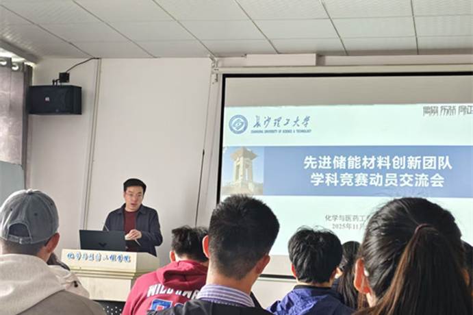 2025年11月11日,为积极备战即将到来的高水平学科竞赛,进一步激发团队成员的创新潜能与实践热情,化学与医药工程学院“先进储能材料创新团队”精心组织了一场学科竞赛动员交流会。会议旨在统一思想、凝聚共识、分享经验,为团队在新一轮竞赛周期中再创佳绩奠定坚实基础。