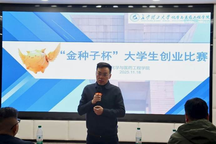 为激发学子创新创业热情,培育优质创业项目,营造“敢闯敢试、勇于创新”的浓厚氛围,11月18日,化学与医药工程学院2025年“金种子杯”大学生创业大赛院级选拔赛在工科三号楼B319报告厅顺利举行。本次比赛吸引全院近百名学生到场观摩学习,为创新创业爱好者搭建了交流展示、切磋提升的优质平台。